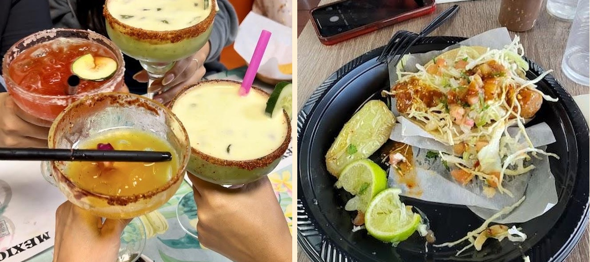 The drink selection includes margaritas, craft beers, and authentic Mexican drinks like Horchata and Tamarindo. Happy hour specials make it even better.